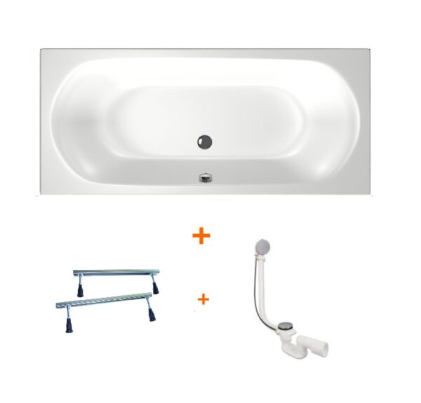 Ja, het bad wordt standaard geleverd met verstelbare badpoten (8–15 cm) en een chroomkleurige afvoer.