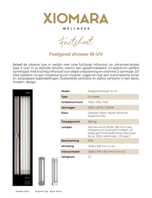 Technische specificaties – Feelgood shower IR-UV XIOMARA