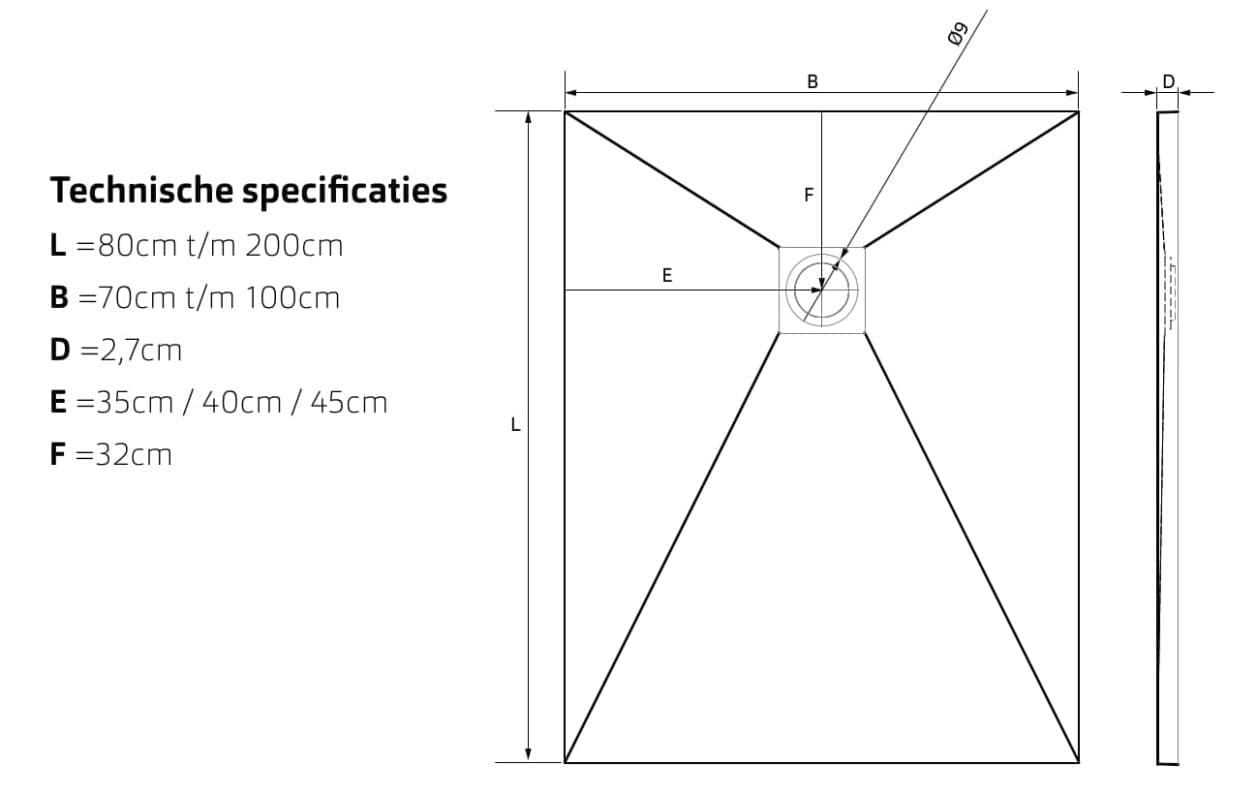 Forte douchevloer ultralight 100x100x2,7, incl afvoer met cover, cement