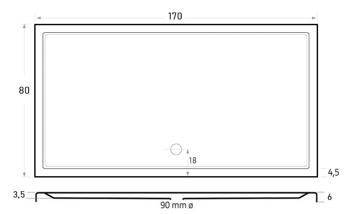 Mariana Plus douchebak 170×80 wit